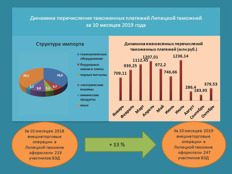Участники Международного таможенного форума-2019 также обсудили вопросы развития института таможенных представителей, интеграцию механизмов технического регулирования в рамках ЕАЭС, меры поддержки экспорта в России, реформу таможенных органов, совершенствование процесса администрирования таможенных платежей, регулирование интернет-торговли, развитие международного сотрудничества со странами Евросоюза, вопросы внесудебного решения таможенных споров и противодействия обороту контрафактной продукции, перспективы развития института УЭО, совершенствование информационных систем таможенных органов и другие.