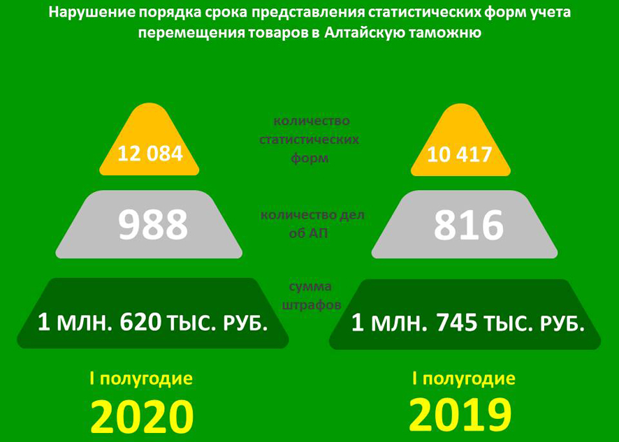 Наибольшее количество дел об административных правонарушениях составляют дела за непредставление или несвоевременное представление статистической формы учета перемещения товаров либо представление указанной формы, содержащей недостоверные сведения (ч. 1 ст. 19.7.13 КоАП), за нарушение требований валютного законодательства Российской Федерации и актов органов валютного регулирования (ст. 15.25 КоАП РФ), а также за недекларирование либо недостоверное декларирование товаров (ст. 16.2 КоАП РФ).