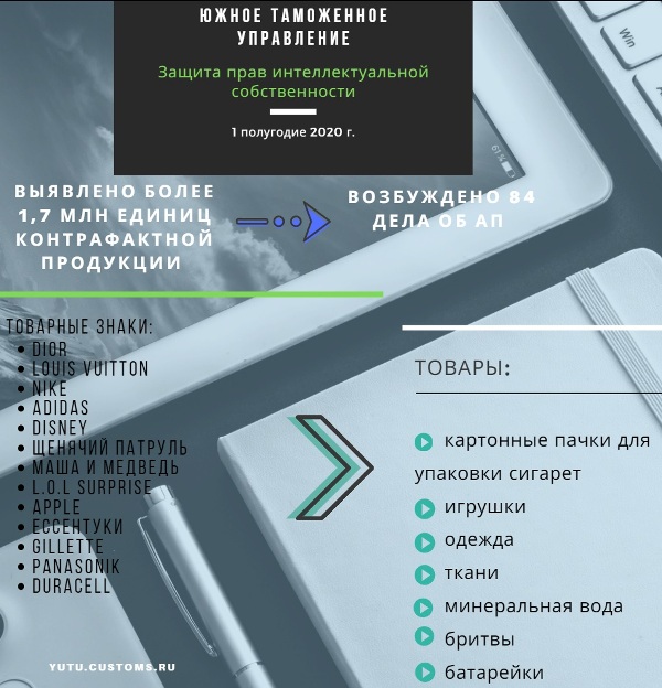 Также в первом полугодии 2020 года Омской таможней зарегистрировано 12 сообщений о преступлении, предусмотренном ч. 1 ст. 180 УК РФ (незаконное использование чужого товарного знака, если это деяние совершено неоднократно или причинило крупный ущерб). В соответствии со ст.ст. 145, 150, 151 УПК РФ данные сообщения о преступлении в установленные законом сроки переданы по подследственности в территориальные органы внутренних дел для принятия процессуального решения. На основании данных материалов возбуждено 4 уголовных дела по ч. 1 ст. 180 УК РФ.
