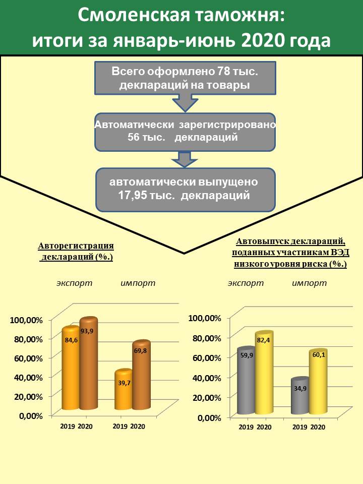 За первое полугодие 2020 года таможенными органами возбуждено 58 293 дел об административных правонарушениях (АП). Предметами АП чаще всего являлись продукция растительного происхождения, древесина и изделия из нее, текстильные материалы, продукты животного происхождения, а также табак.